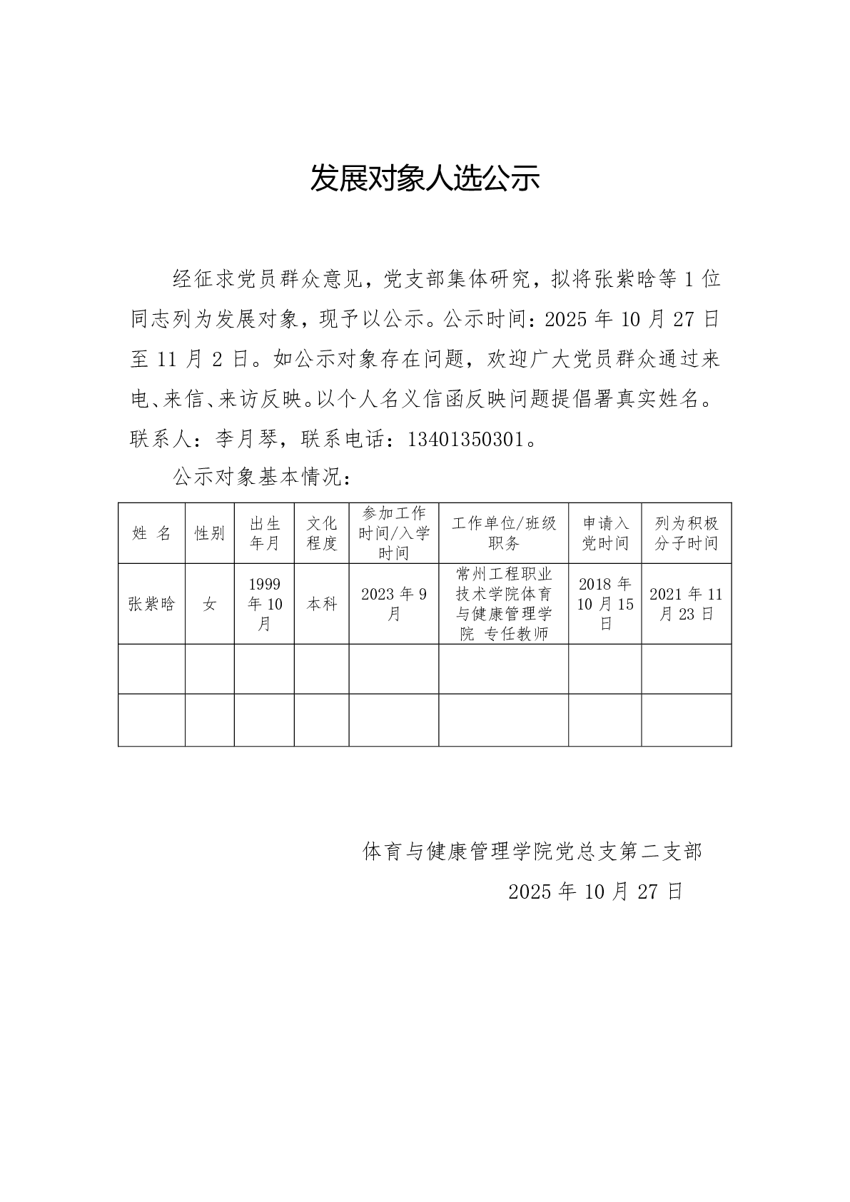 发展对象人选公示