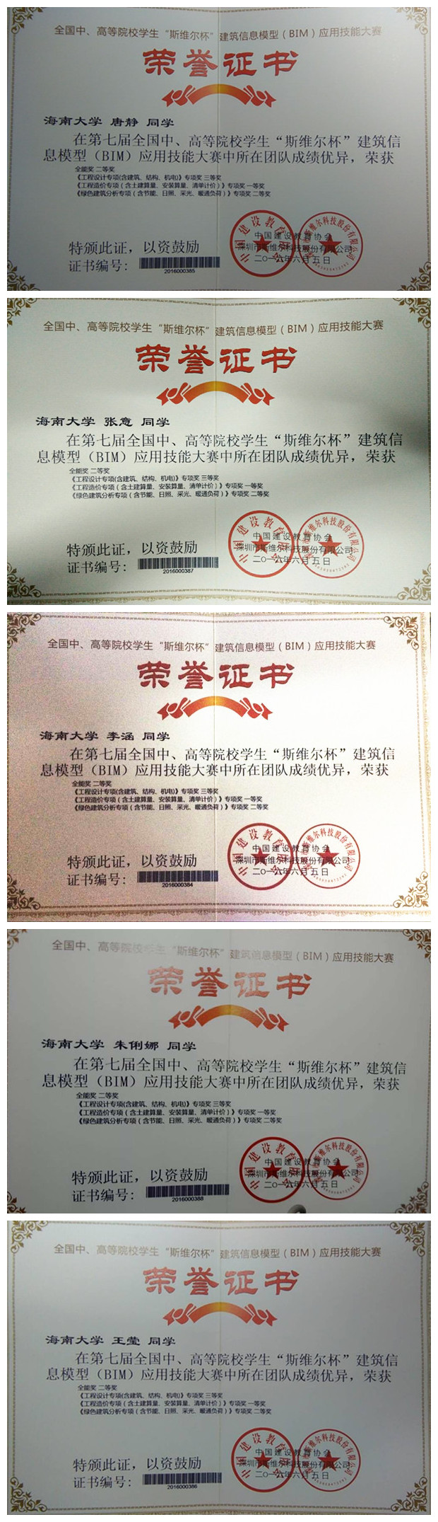 德赢vwin官方入口“南海舰队”代表队在第七届全国中高等院校学生“斯维尔杯”(BIM)应用技能大赛中获得全能奖二等奖,工程造价专项奖一等奖,绿色建筑分析专项奖二等奖、工程设计专项奖三等奖的好成绩。本届比赛的五位参赛队员分别是来自2013级建筑学的张意,2013级土木工程专业的王莹、唐静,2013级工程管理专业的李涵、朱俐娜。新闻部有幸在第一时间对五位队员进行了采访。记者:BIM大赛是国内著名的高校学生竞赛,来自全国各地的高校学子们怀着不同的心情参加比赛,你们是抱着怎样的心态来参加这次大赛的呢?