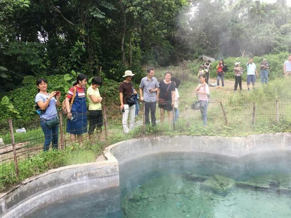 德赢官网博士党员团队与美国纽约州立大学教授Refaat Hussein组成志愿专家组,在保亭县水务局副局长陈宗耀、县七仙岭温泉基础公司相关负责人的带领下,现场考察了七仙岭温泉眼、酒店温泉设施、温泉调节池以及县城污水处理厂,七仙岭温泉基础公司(温泉开发运营方)和保亭县水务公司(县城污水处理厂运营方)有关人员向专家组介绍了温泉开发利用、县城污水处理厂运营管理等情况。