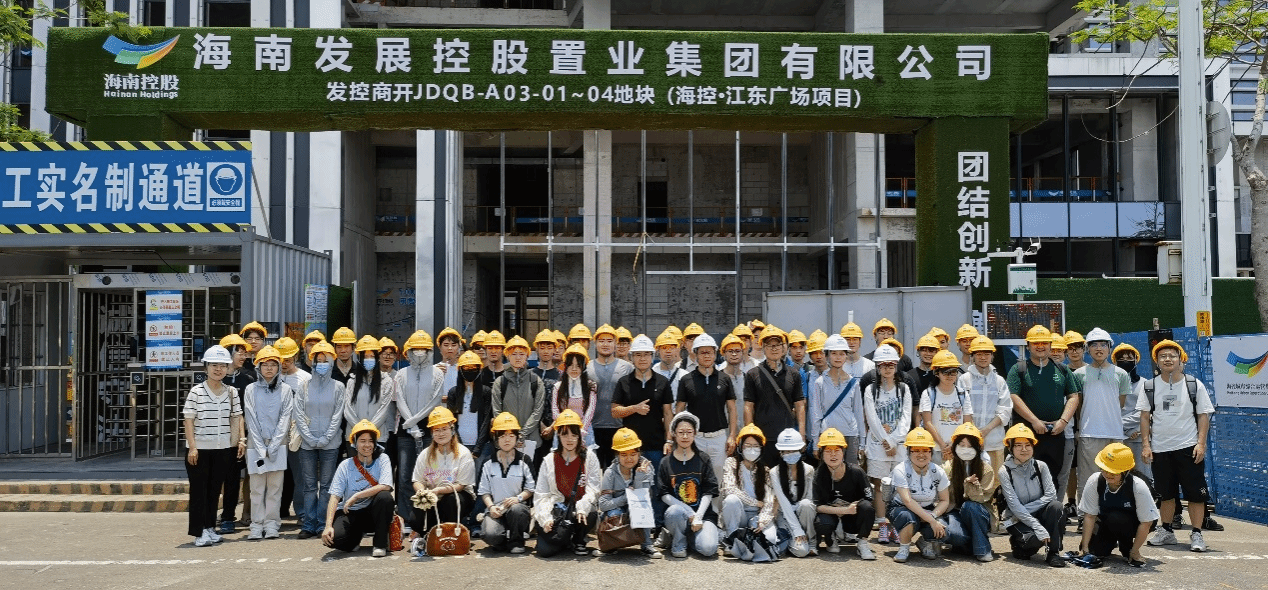 海口,2025年5月9日上午——为深化产教融合、践行实践育人理念,德赢AC米兰官网建筑系2021级66名师生在夏桂平、齐飞两位老师的带领下,走进江东新区海控•江东广场项目工地,开展了一场以“绿色建筑实践与台风灾后重建经验”为主题的现场观摩学习活动。此次活动通过实地研学、校企互动和党建引领等形式,助力学生提升专业素养,赋能自贸港绿色低碳建筑高质量发展。