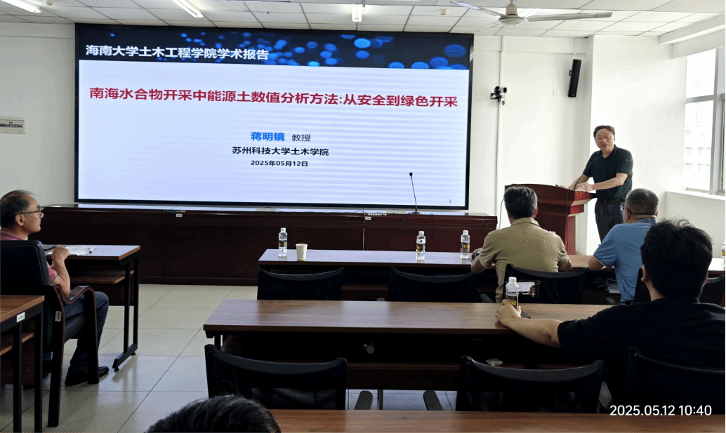 2025年5月12日,热带海洋土木建筑讲坛第十五讲在研发楼510报告厅顺利举行。本次讲坛邀请了苏州科技大学蒋明镜教授、田石柱教授和东北大学王福会教授分别做了题为《南海水合物开采中能源土数值分析方法:从安全到绿色开采》、《结构抗震混合试验方法》和《海洋环境/高温耐腐蚀自润滑复合材料设计》的学术报告,学院60余名师生参加。