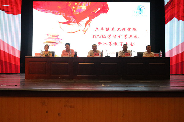 大会由学院党委罗邻球副书记主持,共分开学典礼和入学教育大会两个阶段。第一阶段为迎新大会。首先由教师代表曹新颖老师发言,曹老师以殷殷之情去感染新同学,教育同学们不负大好时光,在最美的年纪做最有意义的事。接着,由学生代表晏维杰发言,晏同学以自己在大学学习和实践的经验,为新同学指明了大学的道路。随后,新生代表刘美璐发言,她以自己为何学土木为引,要发愤图强,不负韶华。最后,由学院曹宝珠院长讲话,曹宝珠院长为新生提出了四点建议:调整学习方法,合理安排时间;做出长远规划,积极社会实践;开拓专业视野,培养情操素养;形成独立人格,弘扬传统美德。