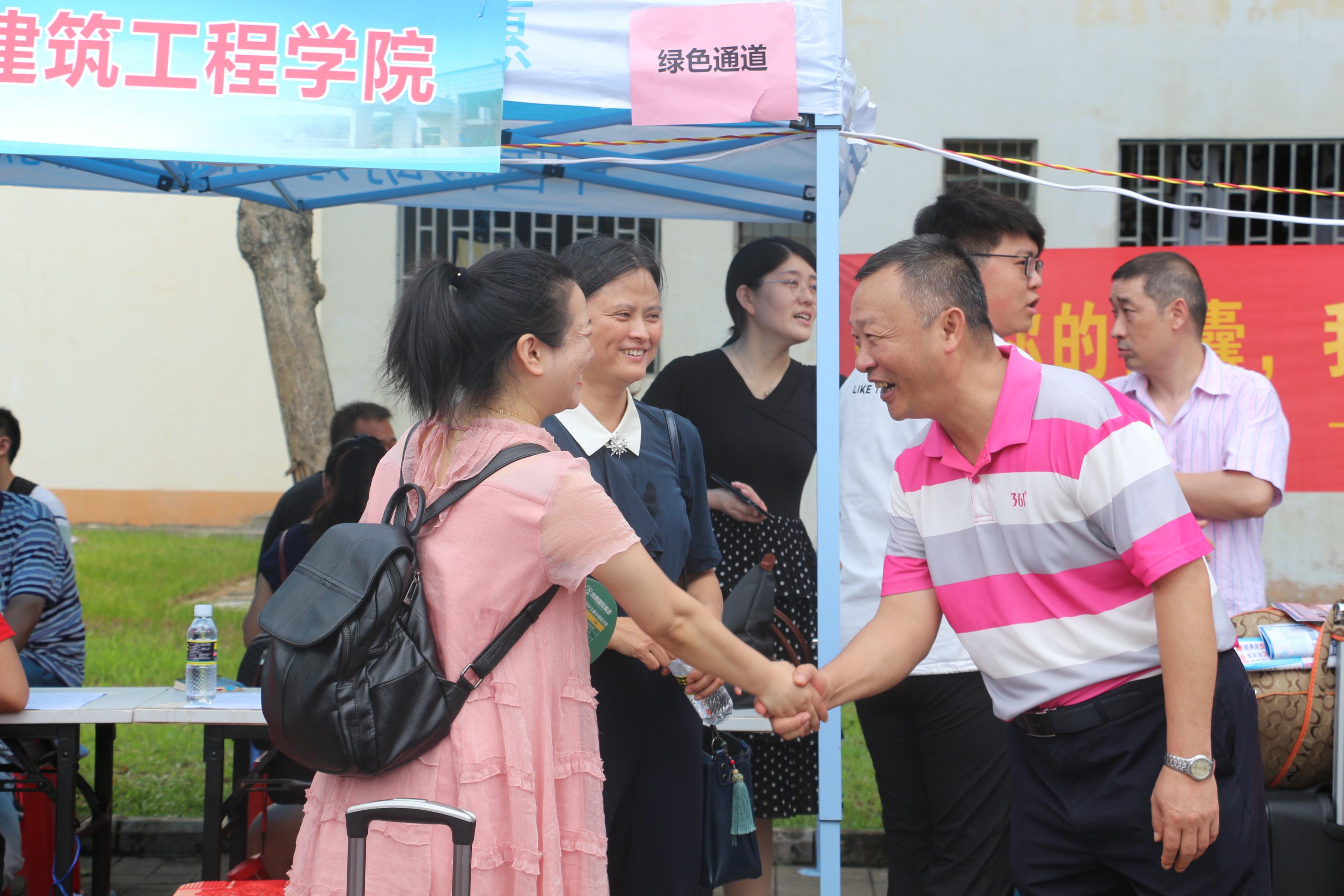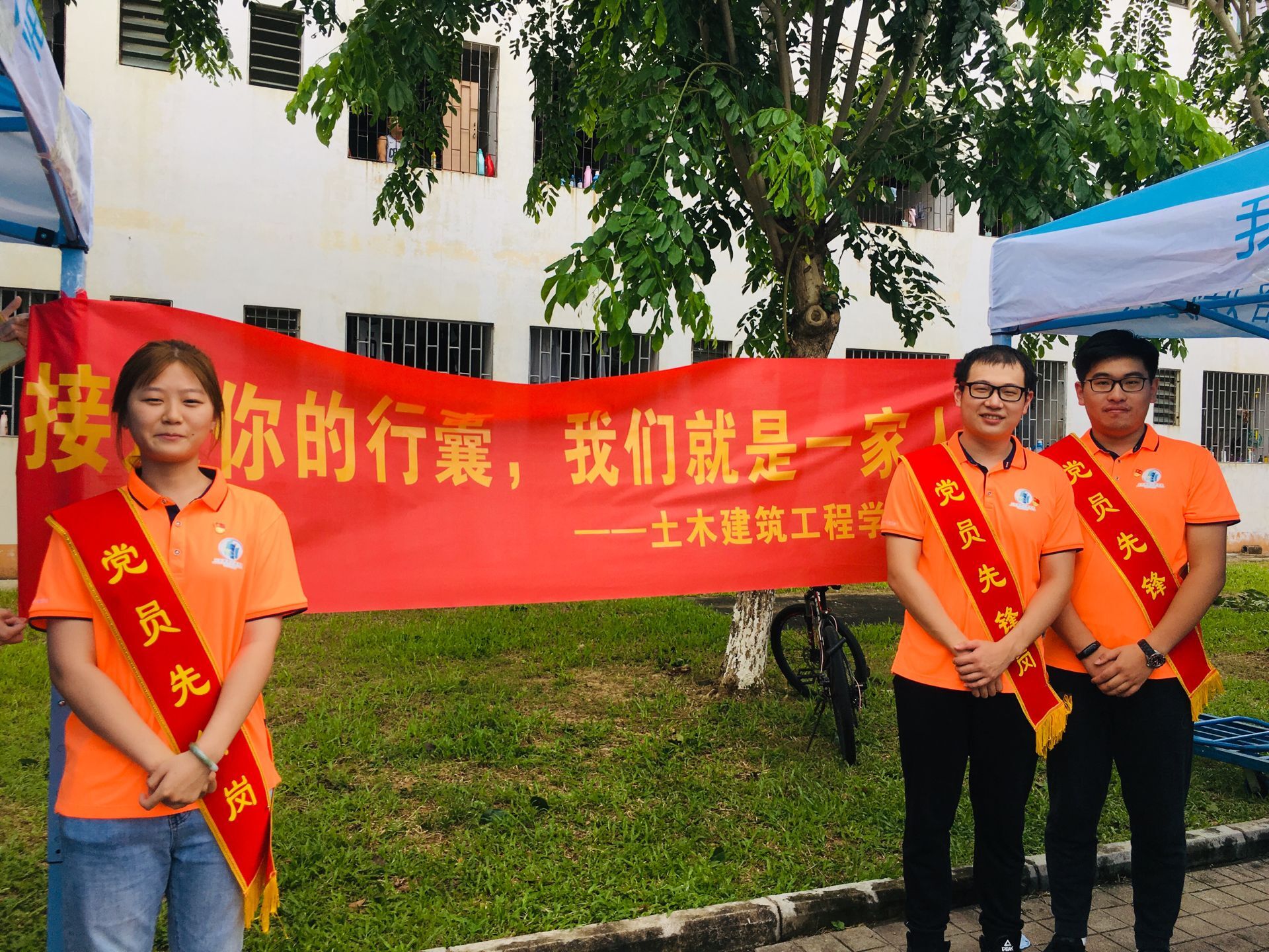 9月5日上午6时许,迎着清晨的阳光,学院学生组织负责人以及志愿者们早早地开始了迎新大本营的布置工作。怀抱着对大学生活的无限憧憬,在布置的场地过程中,已经陆续有新生前来报到。本次新生报到的场地有两个,分别是迎新大本营和研发楼318办公室。新生凭录取通知书在大本营领取信封和《土建青年》后,填写个人家庭信息,由志愿者带领前往研发楼318完成相关报到注册,提交个人档案和家庭信息的填写表。迎新大本营内还设有“绿色通道”办理处和家长休息处。在此期间,党委卢江海书记、周智院长、党委罗邻球副书记、邱宙庭副院长亲自到大本营处与新生、新生家长进行了亲切交谈,并亲自到新生宿舍走访,学工办主任李江俊老师、副主任詹达夫老师、辅导员白玉老师和牛玉老师也到场为新生们答疑解惑,保证新生顺利完成报道,注册入住。在场的每一位学院学生组织负责人、志愿者为新生们提供热心帮助,耐心地解答新生的困惑,穿梭在校园里,成为一到靓丽的风景线。