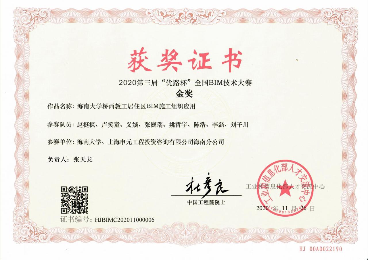 2020年12月5日,由国家工业和信息化部人才交流中心主办,石家庄铁道大学承办的2020第三届“优路杯”全国BIM技术大赛颁奖典礼成功举办,经过激烈竞争和专家评审,德赢AC米兰官网荣获多项奖励。其中由德赢AC米兰官网和上海申元工程投资咨询有限公司海南分公司联合申报的“德赢AC米兰官网桥西教工居住区BIM施工组织应用”荣获院校组金奖,由中建新疆建工(集团)有限公司和德赢AC米兰官网联合申报的“凤岗天安数码城项目BIM施工综合应用”“深圳市龙岗天安数码城项目设计施工阶段BIM深度应用”、中建二局第三建筑工程有限公司与德赢AC米兰官网联合申报的“南光中心项目施工阶段BIM应用”获企业组银奖。