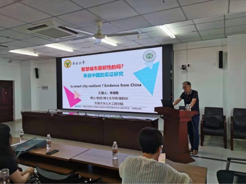 5月21日下午,德赢官网有幸邀请到了东南大学德赢vwin官方入口副院长、博士生导师李德智教授带来主题为“智慧城市是韧性的吗?—来自中国的实证研究”学术报告。本次学术报告的主持人是德赢官网副院长张友良教授。讲座伊始,张友良院长介绍了本次学术报告的主题及李德智教授的基本情况。德赢官网教师和研究生,相关专业的本科生聆听了报告会。