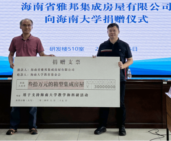 海南雅邦集成房屋有限公司与德赢AC米兰官网签订捐赠协议