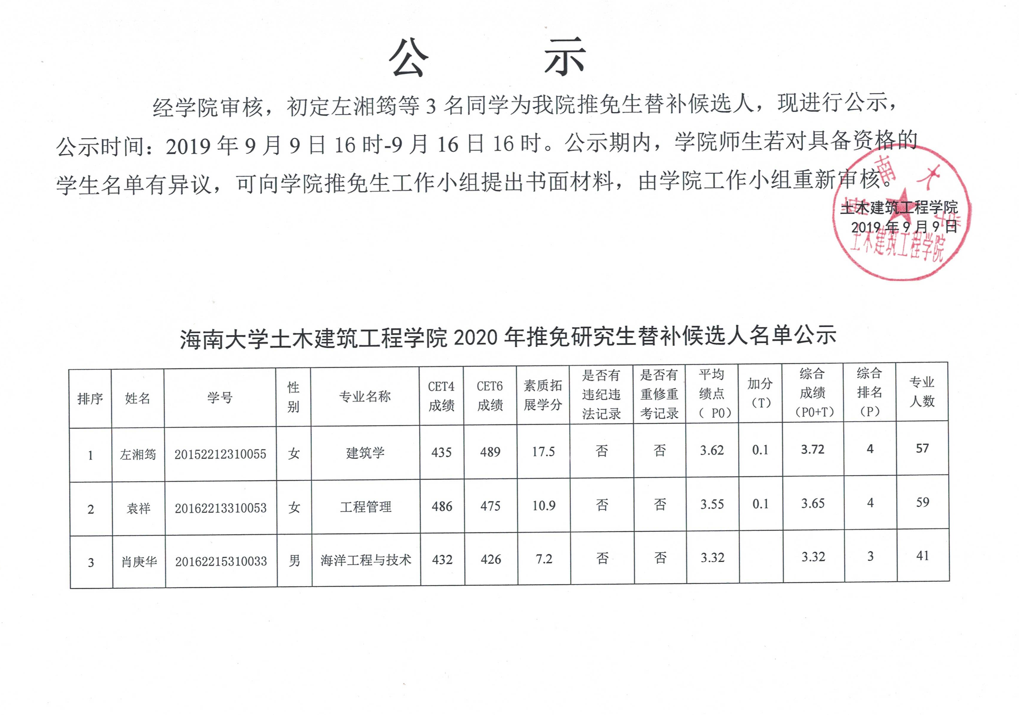 德赢AC米兰官网2020年推免研究生替补候选人名单公示