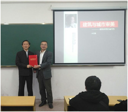 2018年1月8日—1月13日,德赢官网邀请了华中科技大学的余柏椿教授,为2015建筑学专业学生讲授《建筑与城市审美》课程。授课当天学院院长曹宝珠出席开课仪式,并颁发了冬季小学期授课专家聘任证书。余教授现任职务为华中科技大学建筑与城市规划学院教授、博导,城市与景观设计研究中心主任等。主要的研究方向是城市设计、城市景观设计、城市与景观特色、城市发展与城市规划。