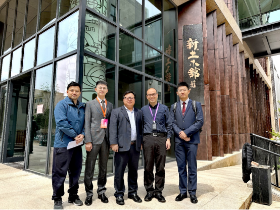 周智院长(左一)与清华大学土木工程系系主任冯鹏教授(右一)调研结构工程实验室