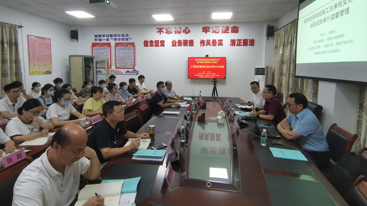 6月9日下午,在保亭县审计局会议室,二十余人参加讲座活动。政府投资项目的工程结算超设计概算是普遍存在的问题,如何消除?办法很多,而其中管控工程变更是一个非常重要的环节。刘金灿老师针对工程审计业务的工作需要,并且结合业务干部的实际知识背景,选择《政府投资项目施工总承包变更及现场签证的审计监督管理》为讲座的主题,系统的讲授了政府投资工程建设活动的特点、工程变更的内涵及类型、工程变更问题审计治理对策。讲座结束,刘老师与审计局领导、干部互动热烈。审计局干部提出了工作中存在的疑难问题,刘金灿老师逐一解答。审计局局长陈斌表示,讲座就像及时雨,让审计局干部增长了知识,开阔视野,提高了大家分析问题、解决问题的能力,刘金灿老师深厚的理论底蕴、丰富的工程实践经验,令人印象深刻。德赢vwin官方入口与保亭县审计局于2021年5月份订立合作协议,并且开展了实质性合作。审计局委托学院,针对保亭县政府投资工程项目实际情况,开展“施工总承包模式下工程变更及现场变更签证问题的审计治理研究”。