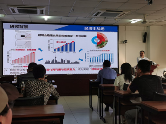肖建庄教授的报告分别从混凝土再生原则与方法、再生混凝土制备理论、再生混凝土的创新发展、再生混凝土的应用准则、再生混凝土的专委会十年回顾几方面进行了介绍,并分享他们团队在建筑工程行业方面所取得的科研成果及应用。他建议我们在今后设计建筑工程时,一定要从安全性、经济性、低碳性三方面考虑。报告结束后,肖建庄教授就师生感兴趣的问题进行了解答。