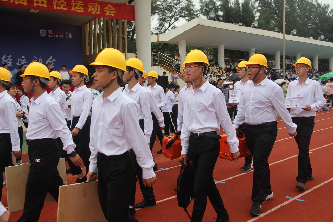 德赢vwin官方入口方阵的成员身着统一服装,头戴安全帽,手持测绘仪、模型、画板等物品,迈着整齐的步伐,带着昂扬的气势来到主席台前,他们个个精神饱满,朝气蓬勃,展现了土建人的精神风貌。