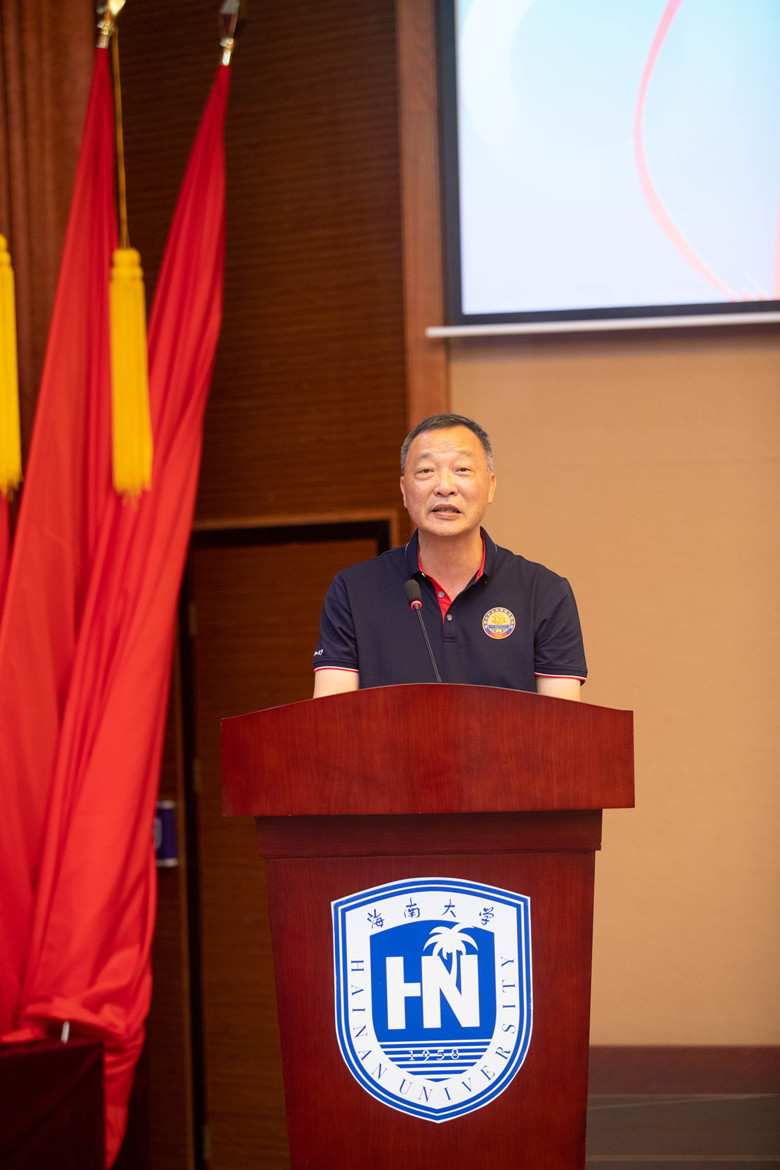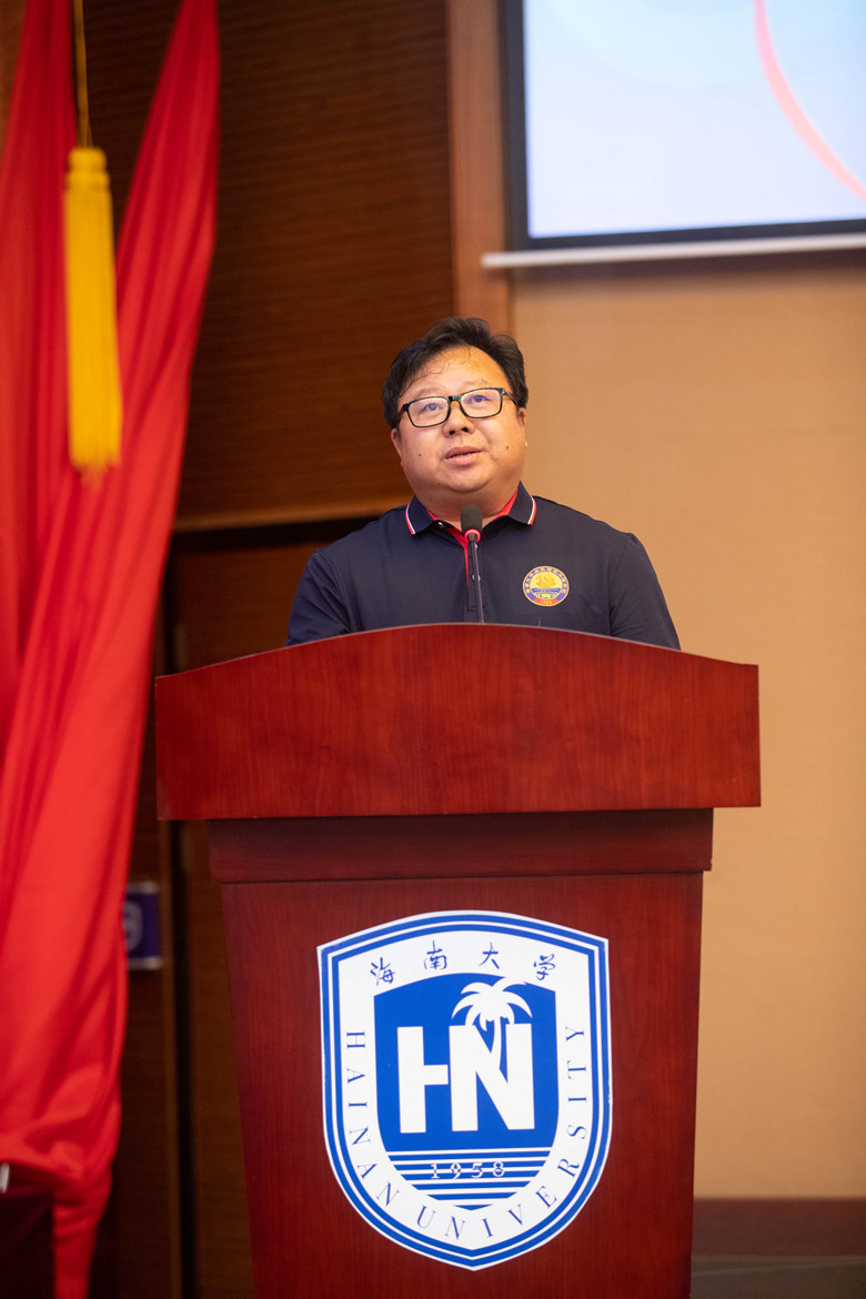 会议第三项,代表发言。2018级土木工程专业学生李明宸作为毕业生代表发言,他表达了对老师、同学、学校的恋恋不舍和感激之情,表示将从脚下这片热爱的土地出发,带着回忆奔赴山海,铭记海大人的家国情怀,不忘初心,坚守理想,做一个对国、对社会、对岗位、对家人、对自己有用的人,做一个大写的“人”。