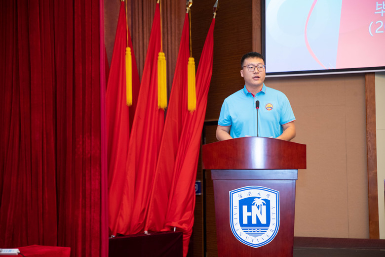 2019级工程管理专业学生张书赫作为在校生代表献上了对毕业生的祝福,表示将以学长学姐们为榜样,在中华民族伟大复兴的接力跑中,跑出青年风采,跑出优异成绩,不负时代,不负韶华,不负母校培养,用自己的实际行动为母校增光、为人生添彩、为国家和社会贡献青春力量!