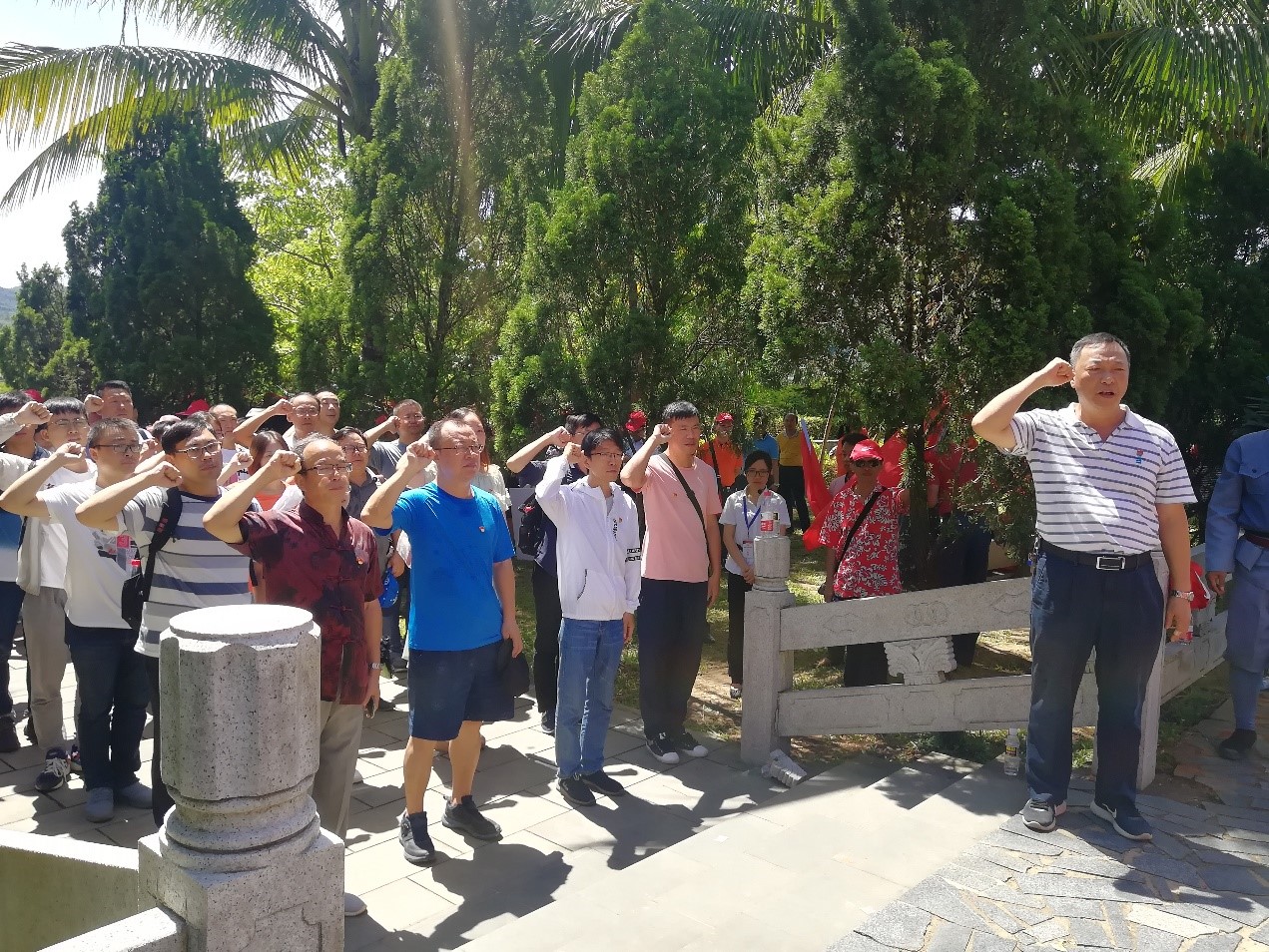 在海南定安母瑞山革命根据地纪念园,讲解员给两个支部的党员上了一堂生动的党课,回顾了琼崖革命23年红旗不倒中最艰苦的岁月。还参观了新建的海南定安母瑞山革命根据地纪念园,详细系统地了解了琼崖革命斗争历史。